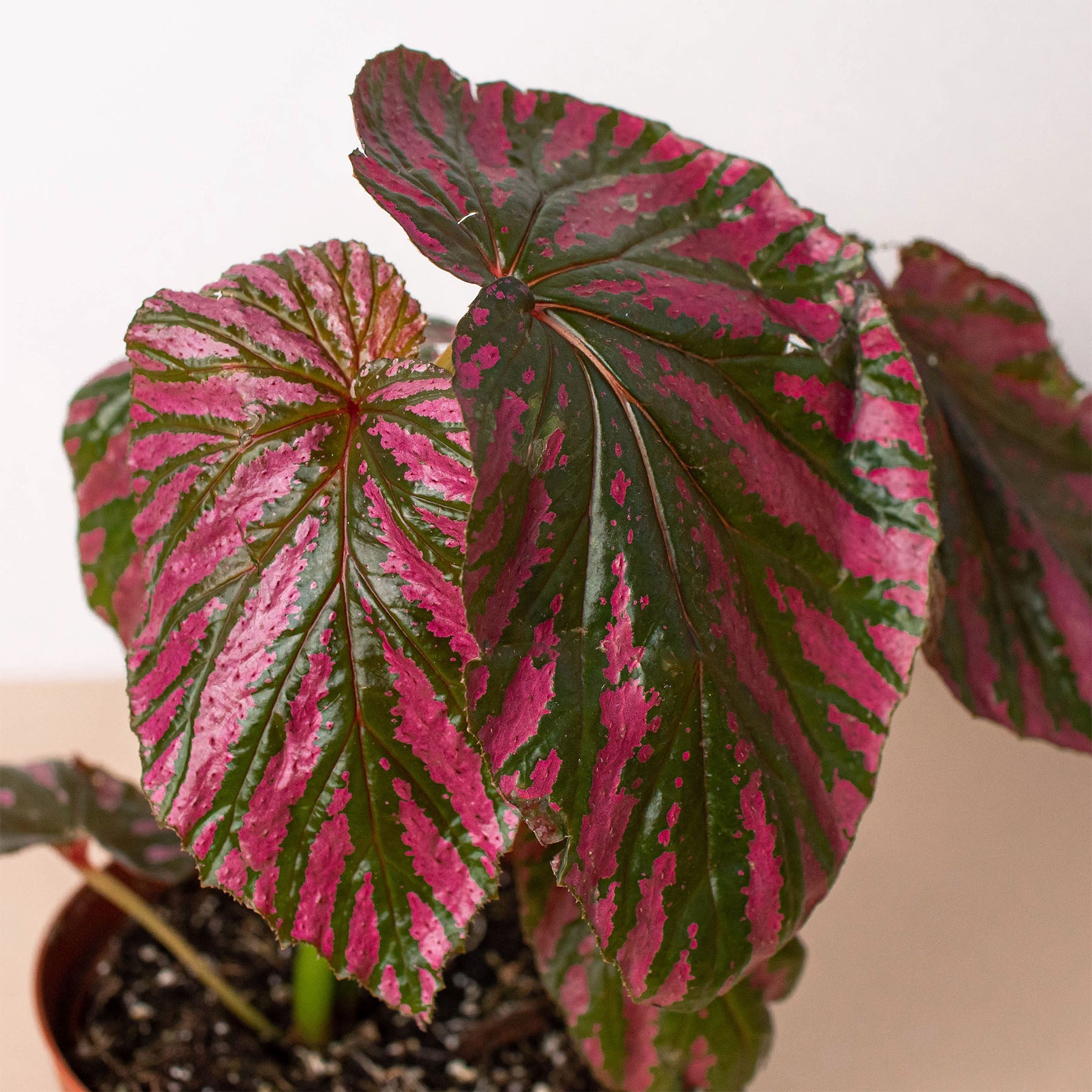 - Description: The Exotica Begonia is an exciting rarity from the rain forests of New Guinea. It's large, metallic-looking leaves sport bright-pink variegation that demands attention. This is a naturally-occurring form, not a cultivated hybrid. If you can meet its basic needs (some warmth & humidity) it is surprisingly easy to grow!