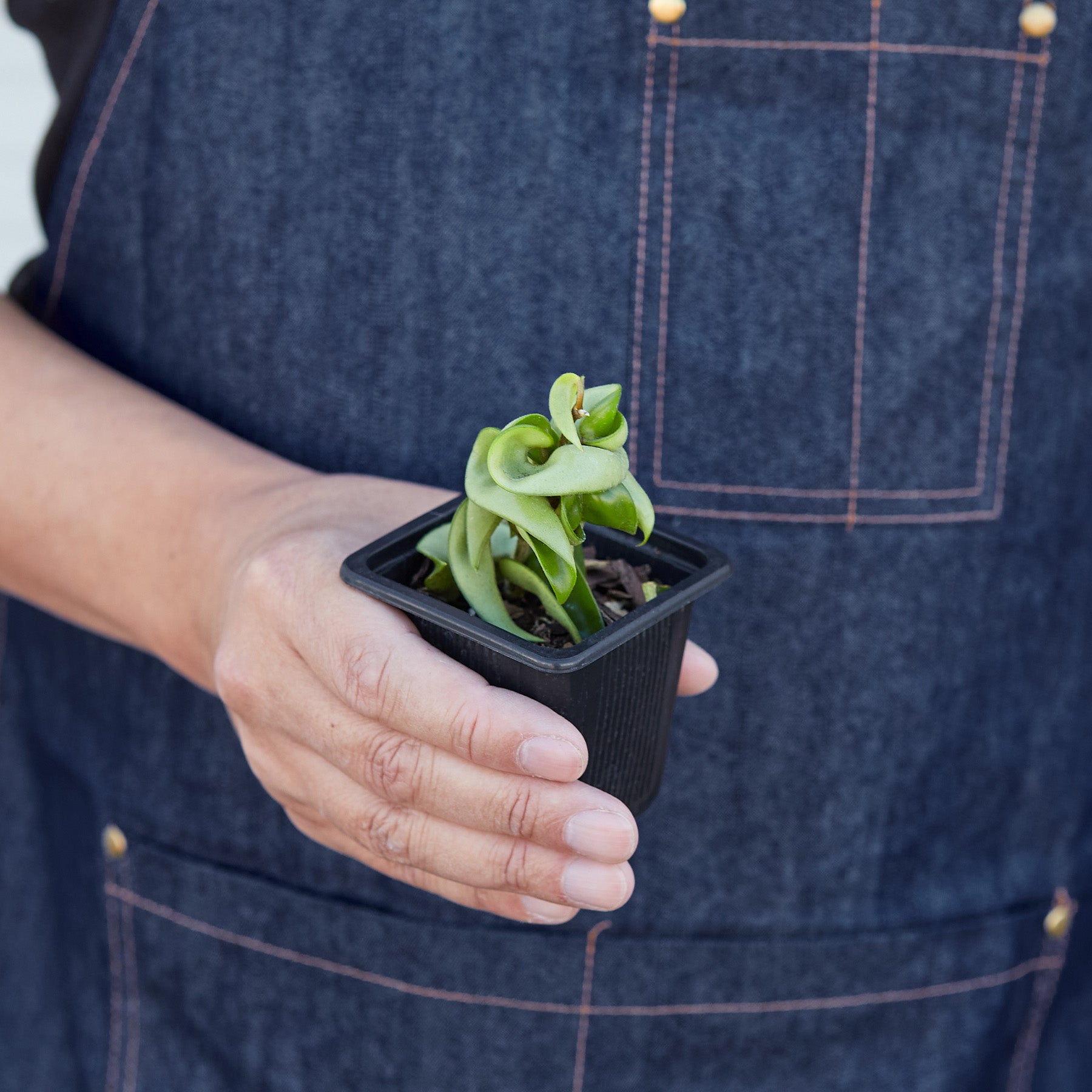 - Description: Unique Hindu rope plants, Hoya carnosa compacta, are draping succulent vines that produce clusters of star-shaped waxy flowers. The thick, twisted, curly, cupped leaves of a Hindu rope plant are why it’s often called Krinkle Kurl. Hindu rope plants can be found in solid green or with variegated leaves. This type of hoya plant is very easy to care for as long as you have plenty of light and are careful with your water.