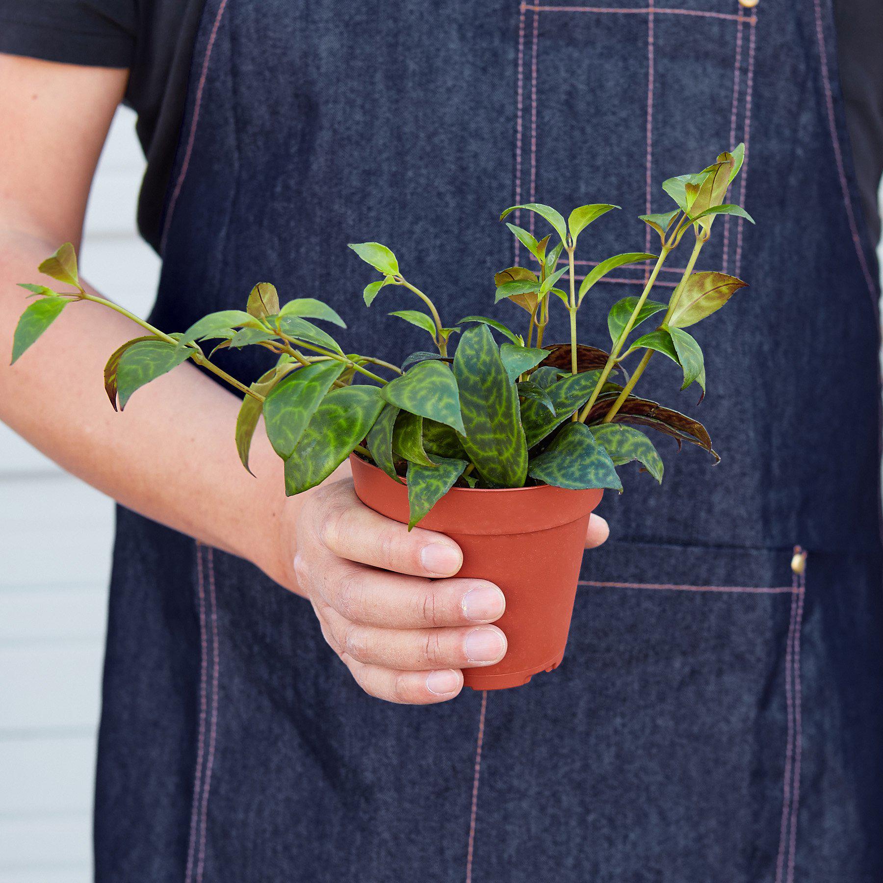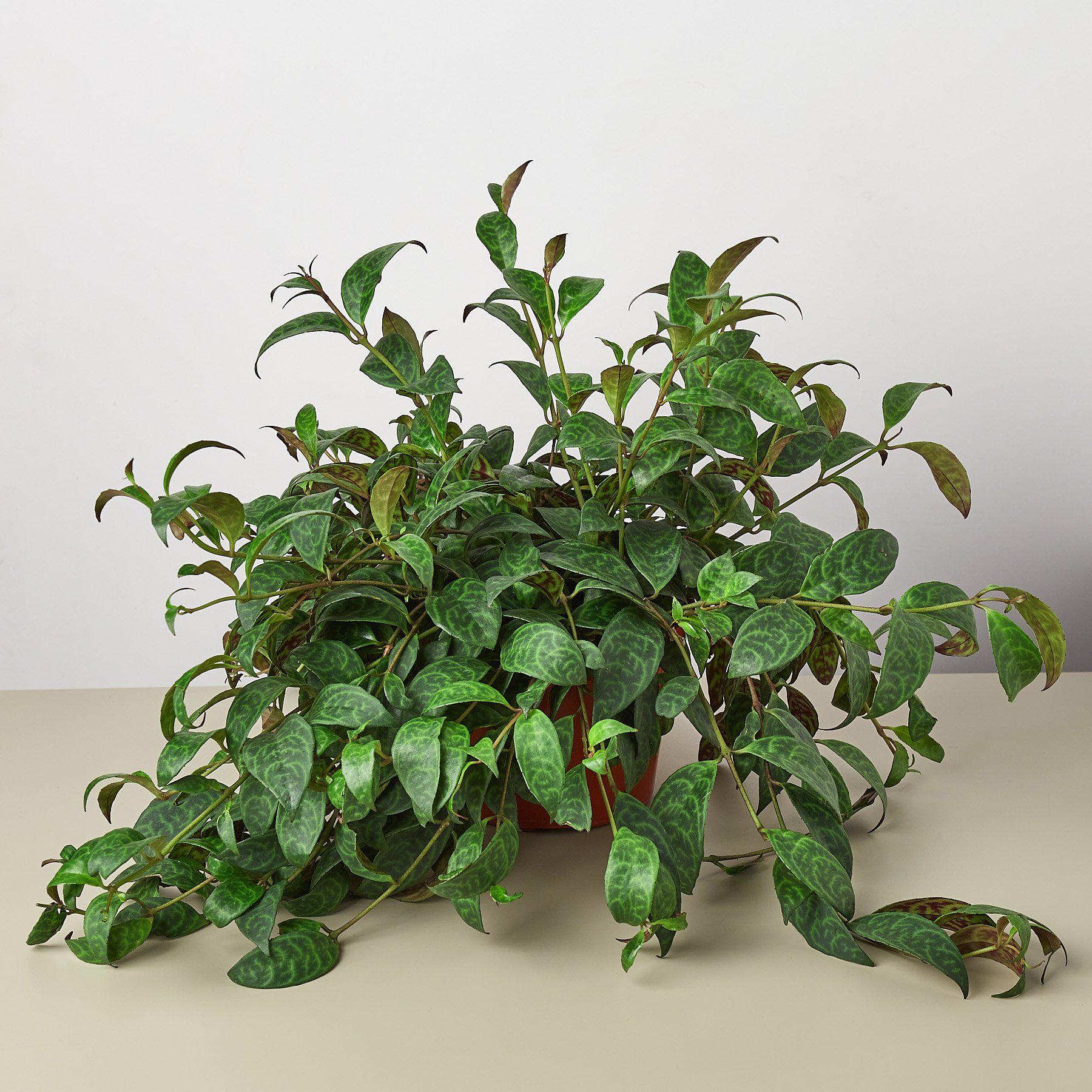 - Description: The black pagoda plant has a mottled, camouflage like foliage that runs along it's cascading stems, making this a great plant for hanging pots. This plant will bloom beautiful orange flowers around late winter to spring but has been known to bloom year-round